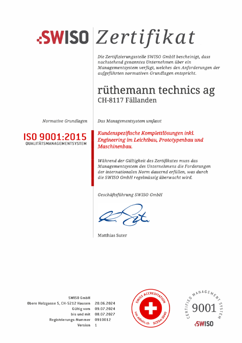 Seit dem 27.10.2010 sind wir gemäss ISO 9001 zertifiziert.